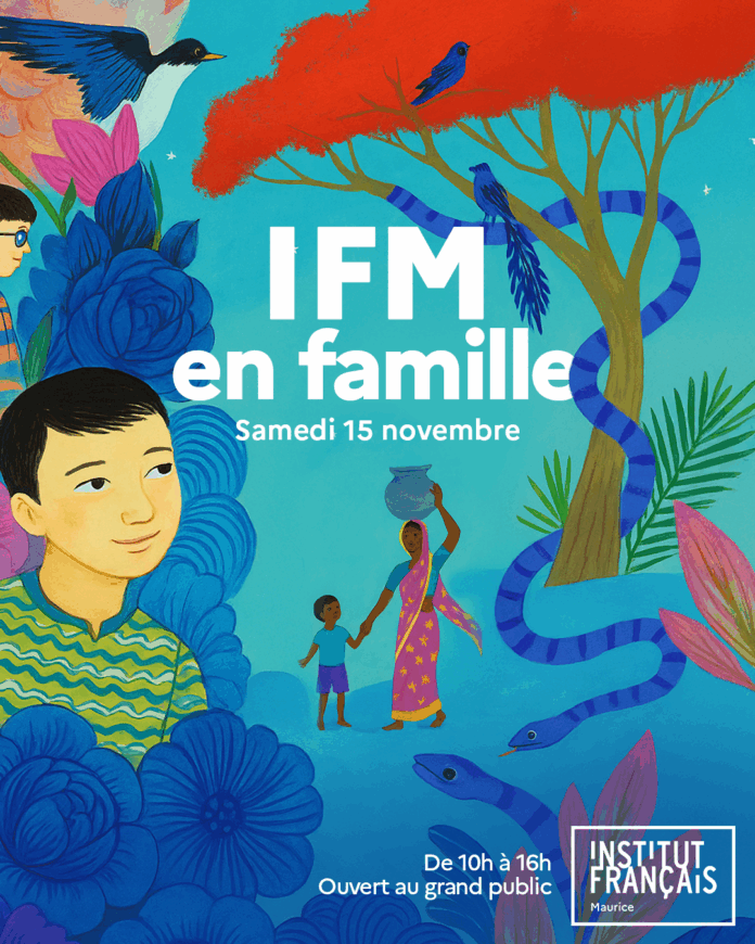 Le samedi 15 novembre, l’Institut Français de Maurice (IFM) se transforme en un véritable terrain de découvertes et de créativité à l’occasion de la journée “IFM en famille !”. Une programmation joyeuse et variée attend les enfants et leurs parents autour du livre, de la musique, du spectacle, du dessin et du cinéma, en partenariat avec l’Atelier des Nomades et les Éditions Pielo.