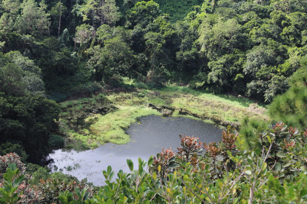 À peine quelques minutes en voiture suffisent pour quitter l’agitation du centre-ville de Curepipe et s’élever vers cet écrin de verdure. L’ascension, à travers des ruelles sinueuses, mène à un vaste belvédère où le temps semble suspendu. Ici, la nature a repris ses droits. Pins, eucalyptus, fougères et végétation endémique habillent les pentes du cratère, créant une ambiance paisible et presque mystique.