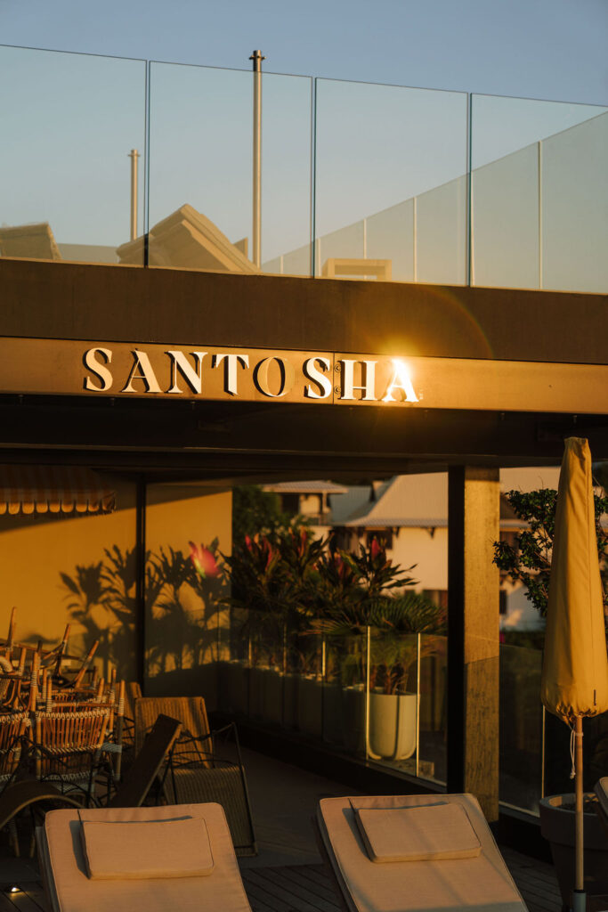 Le Santosha Bar est ouvert tous les jours de 10h00 à 23h00, avec une programmation sunset du mercredi au samedi.
