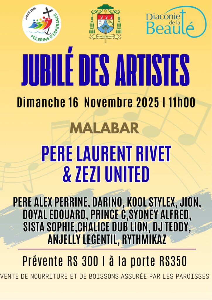 Le singing prêtre Laurent Rivet et Zezi United seront au cœur de l’événement, aux côtés de nombreux artistes locaux : le Père Alex Perrine, Darino, Kool Stylex, Jion, Doyal Édouard, Prince C, Sydney Alfred, Sista Sophie, Chalice Dub Lion, DJ Teddy, Anjelly Legentil et Rythmikaz. Ensemble, ils promettent des performances qui feront vibrer le public et marqueront cette dernière grande activité avant la clôture de l’année jubilaire.