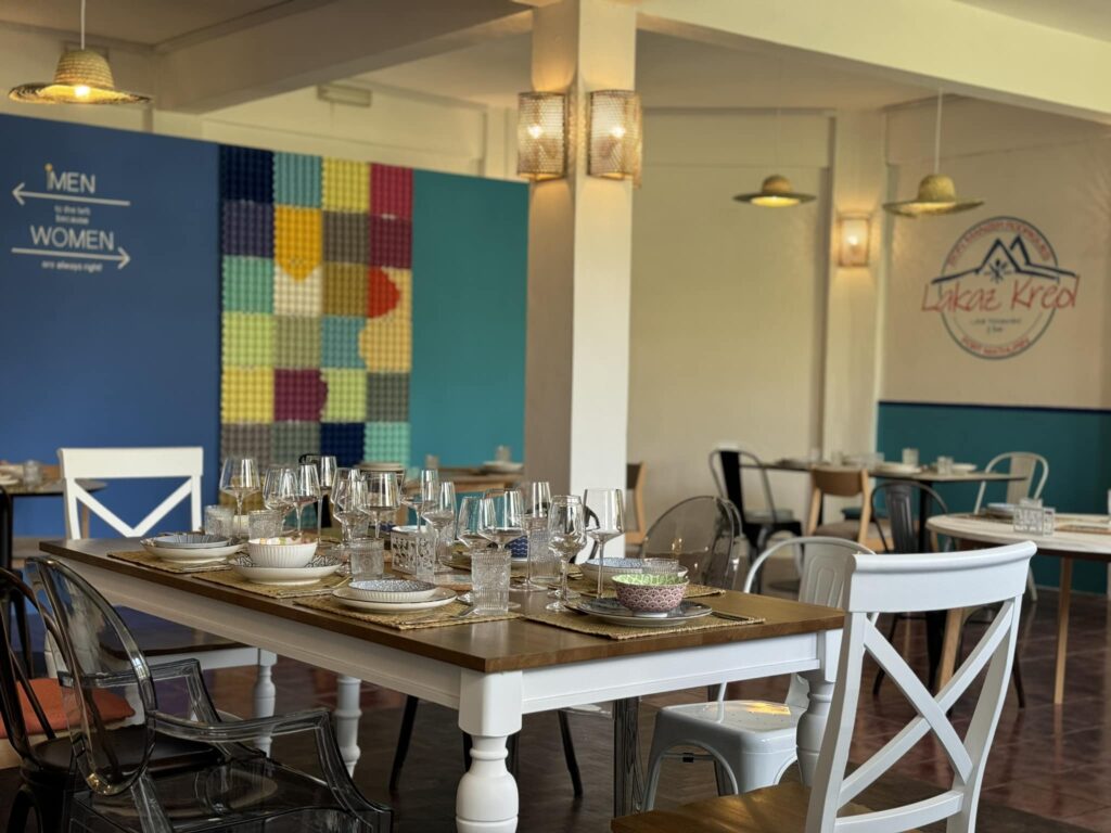 Lakaz Kreol, c’est aussi une ambiance chaleureuse et colorée. Les murs sont habillés de tableaux peints par un artiste local, ajoutant une touche artistique et identitaire au lieu.