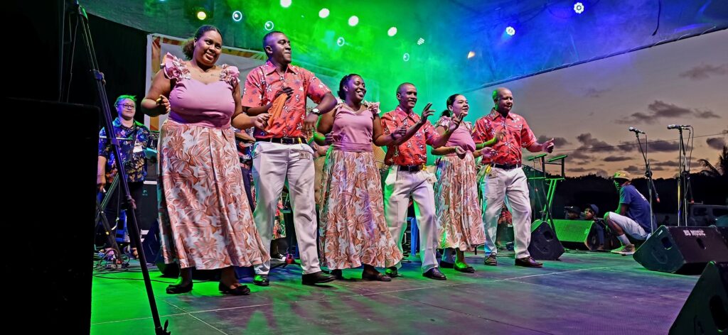Le concert d’ouverture a mis en lumière plusieurs artistes locaux, avec une programmation résolument ancrée dans la tradition musicale de Rodrigues. Rythmes enlevés, voix chaleureuses, percussions familières : l’esprit du Séga tambour et des sonorités insulaires a enveloppé la baie au coucher du soleil, sous un ciel déjà chargé de promesses pour le reste du festival.